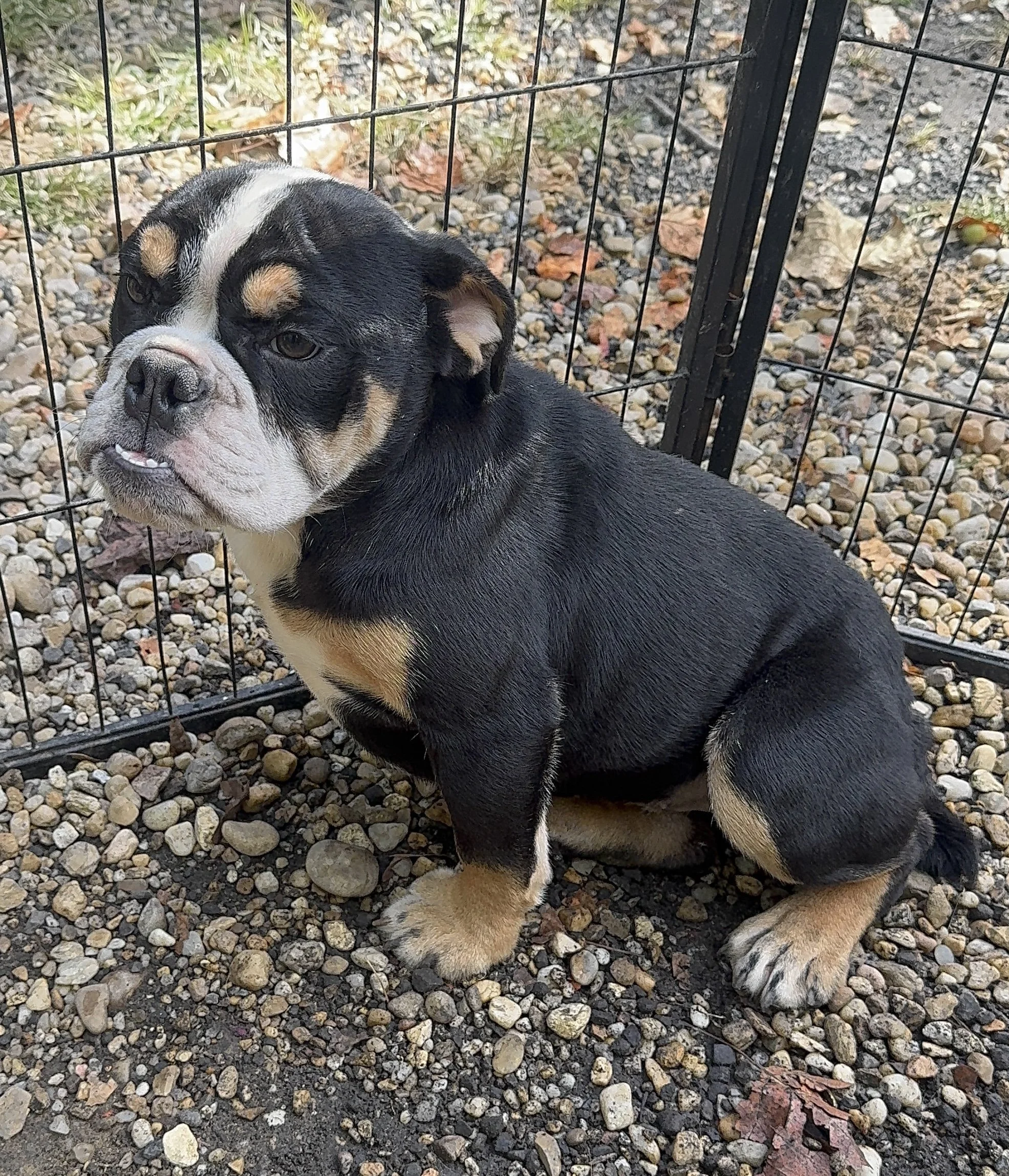 LOLA: THIS BEAUTIFUL BLACK TRI OLDE ENGLISH BULLDOG FEMALE IS AVAILABLE FOR HER NEW HOME. SHE IS 6 MONTHS OLD.